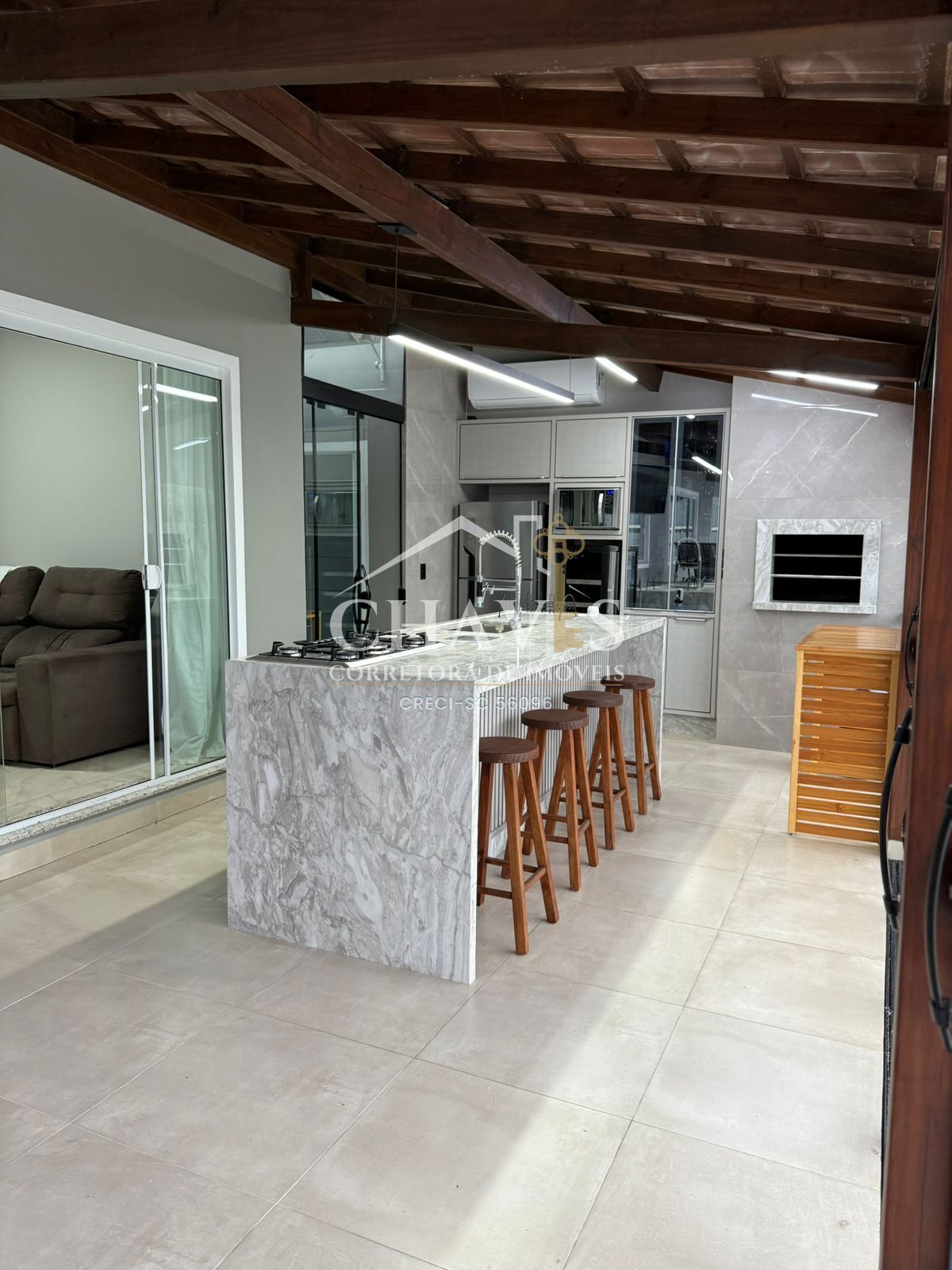 Um dos grandes destaques do imóvel é a área gourmet climatizada, totalmente fechada em vidro Blindex, perfeita para receber amigos e família em qualquer época do ano.